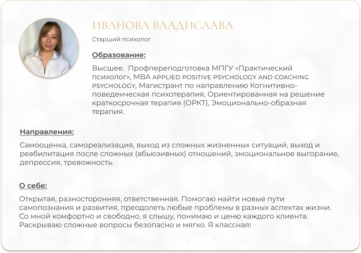 Телеведущая , автор статей в Marie Claire, Glamour, Лиза, Lady.mail.ru, news.ru и другие.