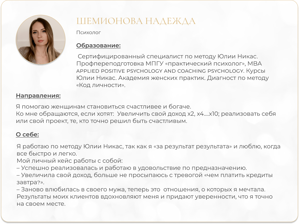 Создатель авторской трехуровневой методики по реализации желаемого.